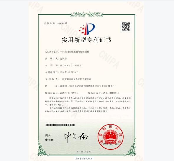 一种应用冲锋衣透气保暖面料